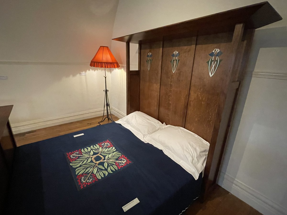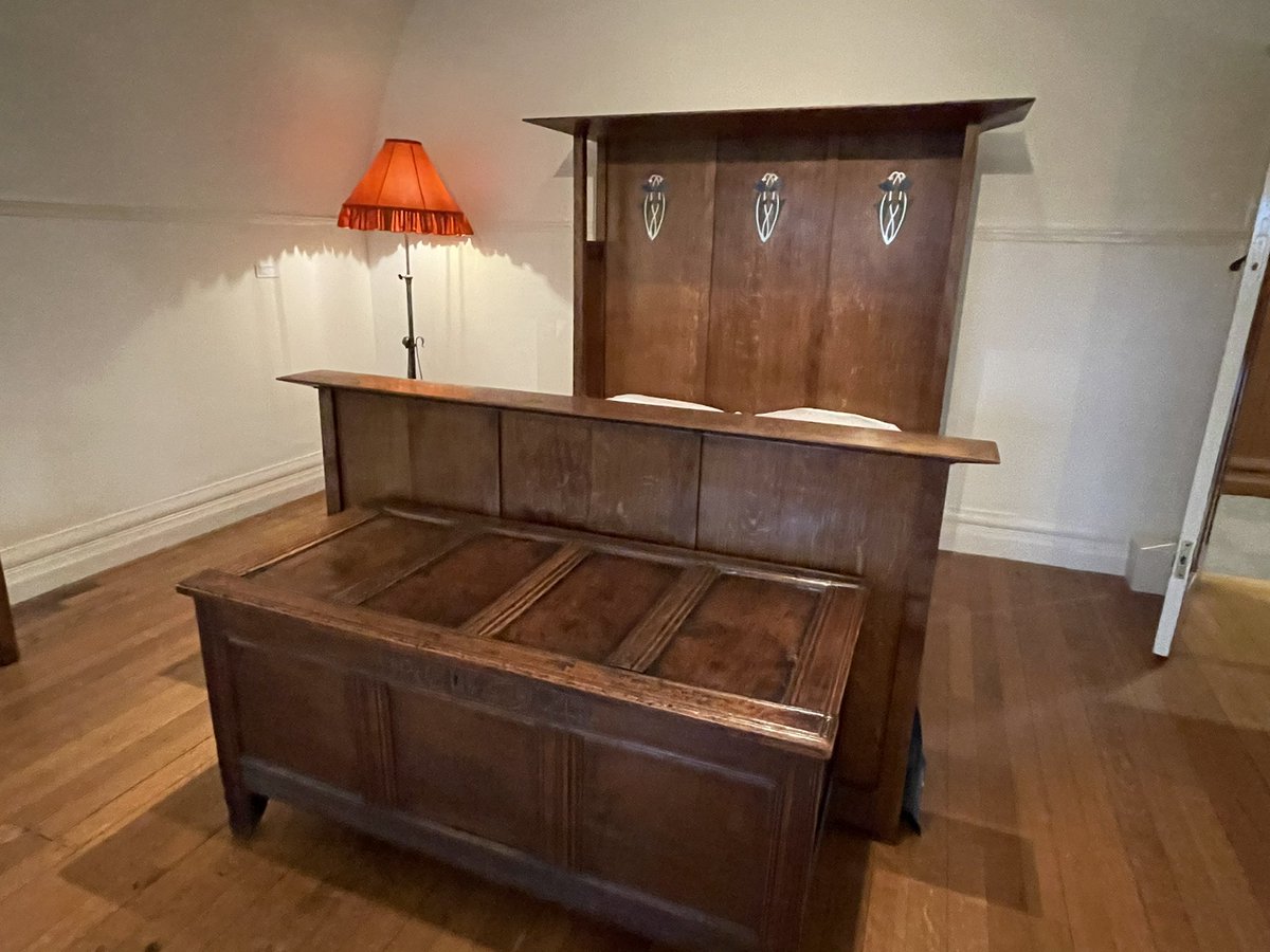 Upstairs on a second floor there is also a fairly newly restored bedroom with arts & crafts bed.
