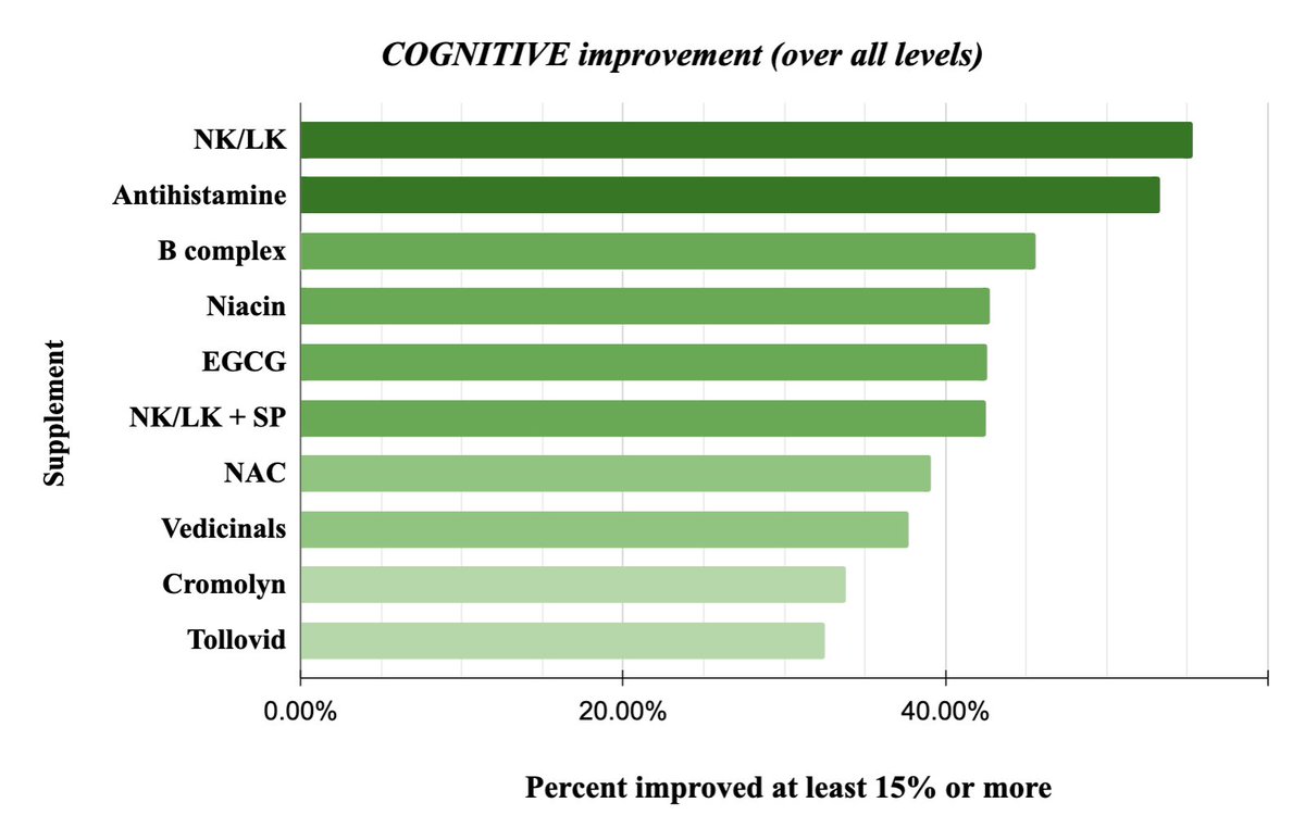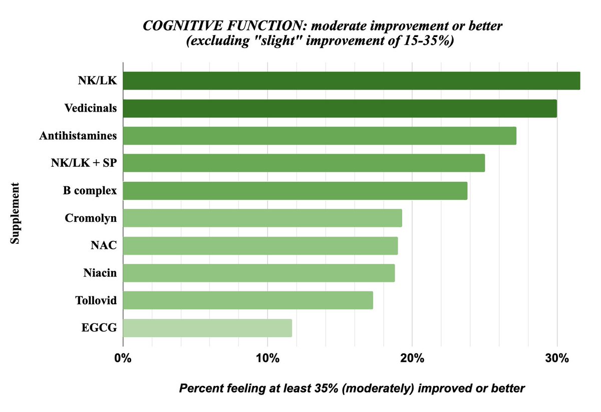 2) Note significant differences in sample sizes between supplements. Supplements with much lower sample sizes (Vedicinals = 44, Tollovid = 48, and cromolyn = 62 respondents) may be less accurate, so take those results less to heart.