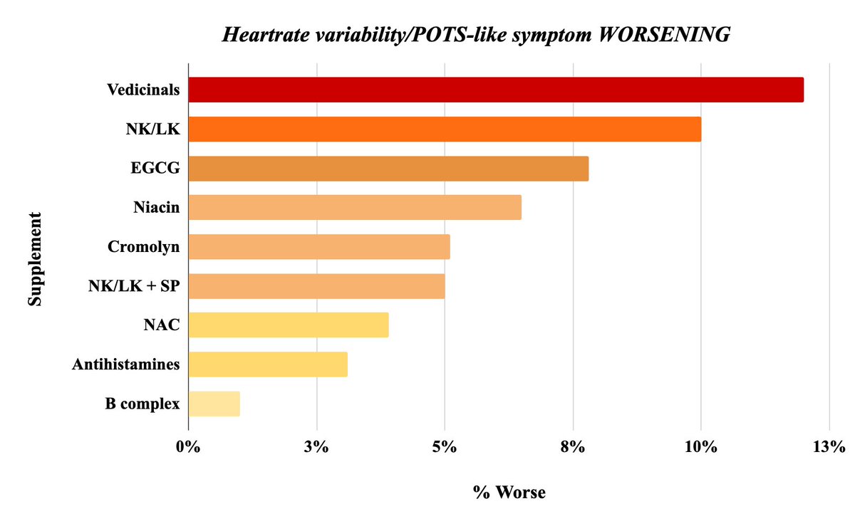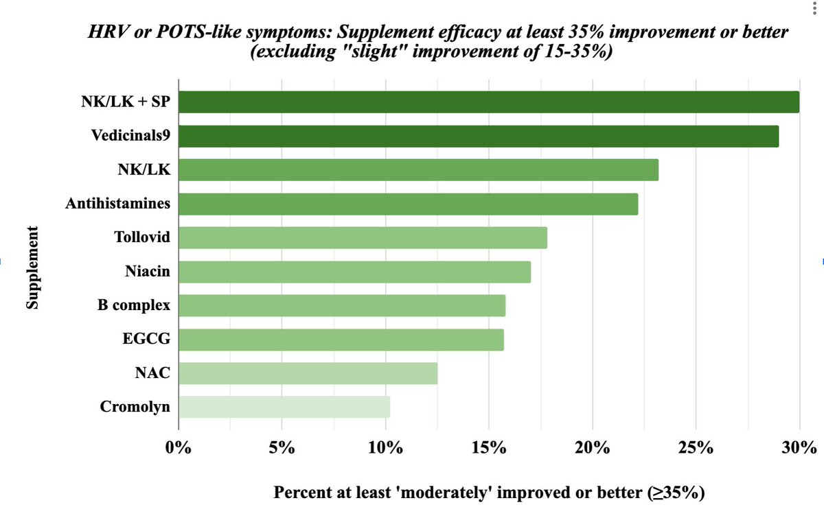 Yet again, Vedicinals shows the greatest *worsening* of HRV/POTS, but jumps into 🥈 when comparing efficacy w/ ≥35% improvement.