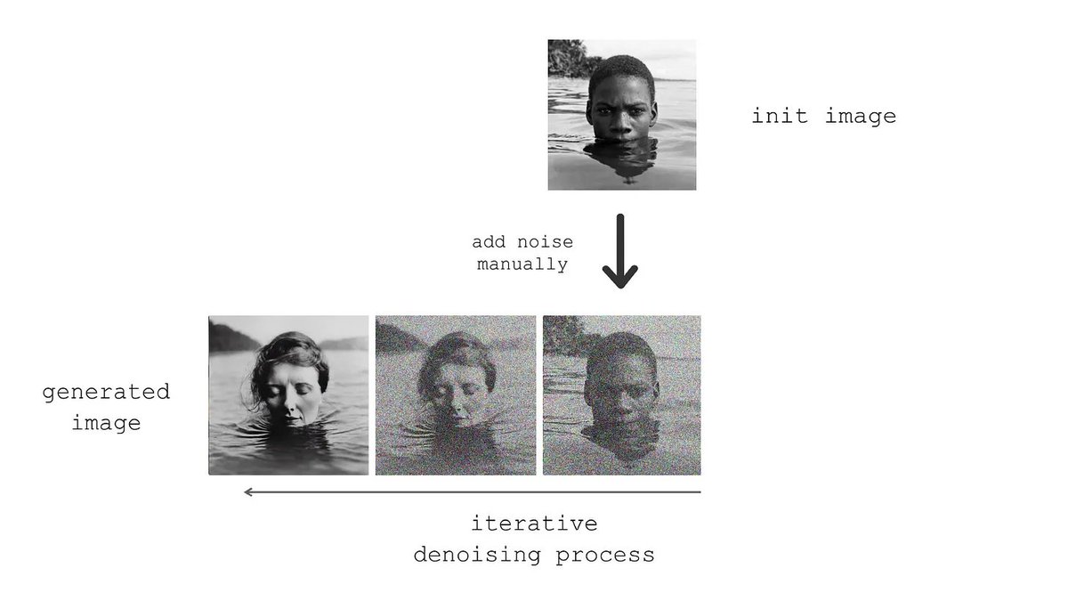with init images, we aggregate generated content on top of our image, and we can even decide how much original content we want to preserve.