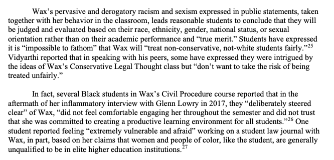 #2 is the real problematic one. These were comments she made on podcasts, to journalists, etc. Extramural stuff that, according to the dean's letter, have made it impossible for her to effectively do her job. That's the implication, anyway.