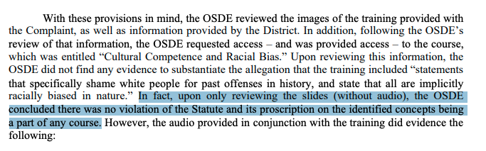There's just one problem. As SDE was later forced to admit, the audio was a verbatim word-for-word reading of the slides. Nothing added, nothing removed. If the slides truly did comply with HB 1775, logically the audio must have complied with it as well.