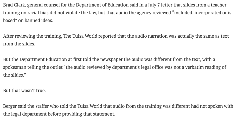 New from @PENamerica, a story out of Oklahoma that has everything critics of anti-CRT laws warned about and everything supporters assured us would never happen.