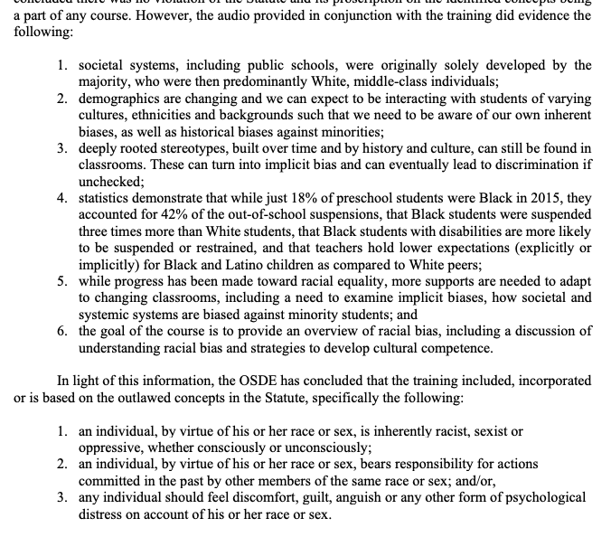 IOW, Clark found that statements affirming the existence of bias in general and implicit bias in particular violate HB 1775. And on the basis of that finding, SBE downgraded TPS's accreditation status from "with no deficiencies" (rank 1 of 5) to "with warning" (3 of 5).