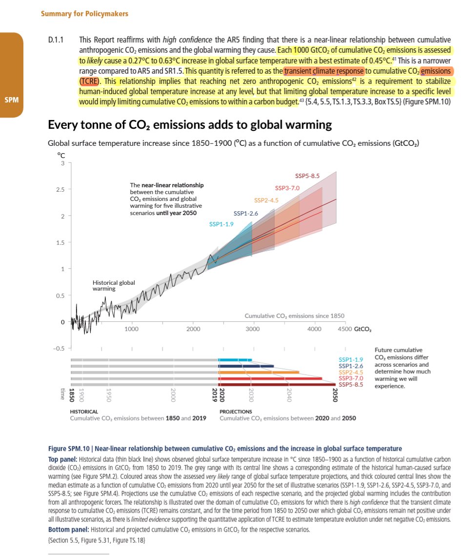 ... the IPCC AR6 WG1 TCRE central estimate 0.45°C per 1,000 GtCO₂, but he is deliberately allowing for upside uncertainty for other climate forcings.