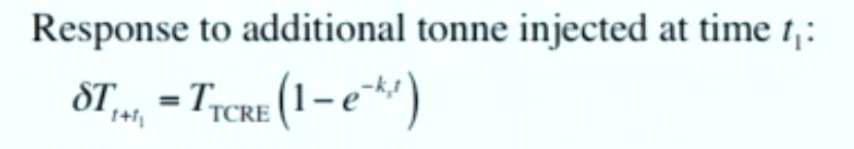2• A function for *marginal* temperature change due to the emission of one extra tonne of CO₂, of the form:👇