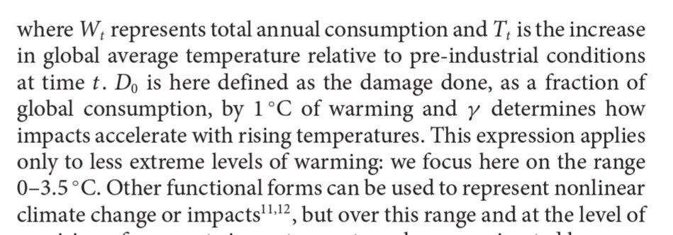 3• A damages function for the overall economy *at time 𝘵* expressed as a function of temperature of the generalized form:👇