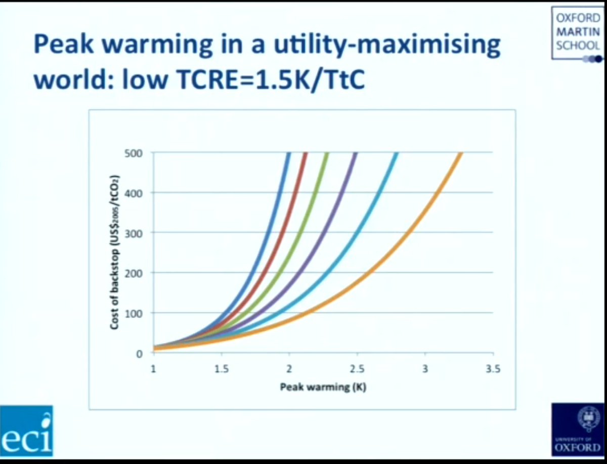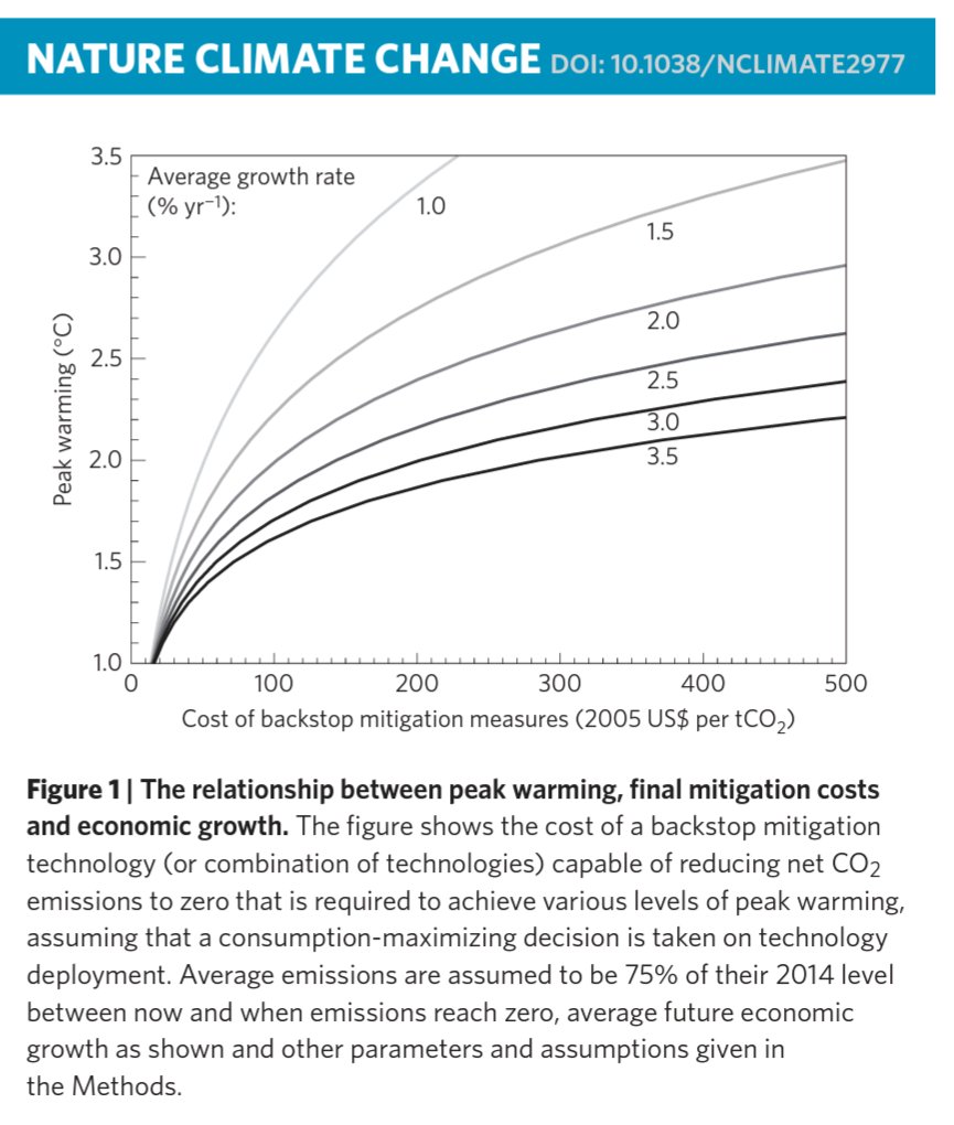 Specifically - and jumping ahead to my "provocative" reference (& partly to entice full reading through my thread!😛) - his results⬇ show peak warming varying *directly* with the backstop technology price, but varying *inversely* with the *rate* of economic growth.