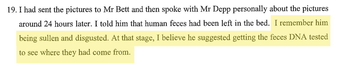 According to Murphy’s witness statement, Depp was “sullen and disgusted" and wanted to get the poop tested for DNA evidence.