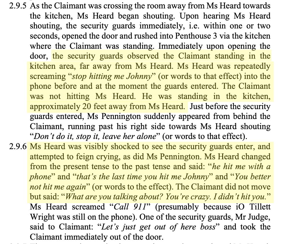 When he arrived, Amber shouted “don’t hit me Johnny” when Johnny was 20 feet away, and that she and Raquel started fake crying when security entered.