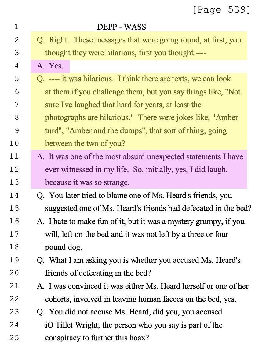 Depp came up with the term “Amber Turd” himself, just like he had made up the phrase “mega pint”, much to the confusion of the NGN's attorney, Wass.