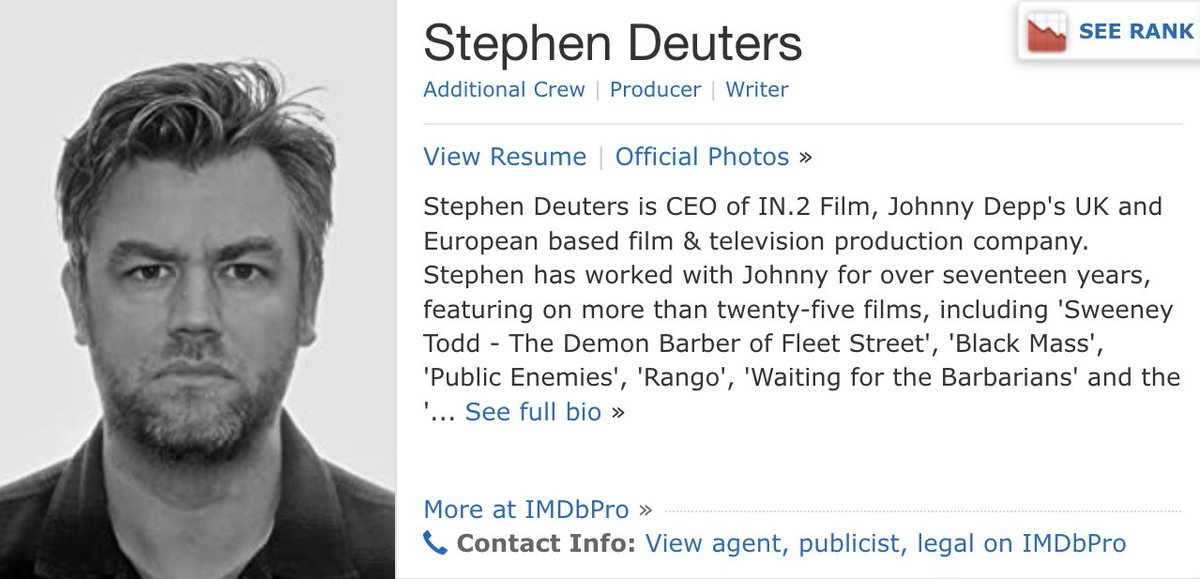 Stephen Deuters is CEO of Johnny Depp's UK and European based film & television production company and has worked with Johnny for over 17 years.