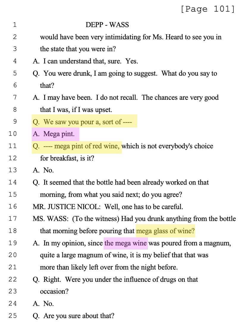 Here’s Johnny Depp in the US trial pretending that he has never heard of the term “mega pint” before.