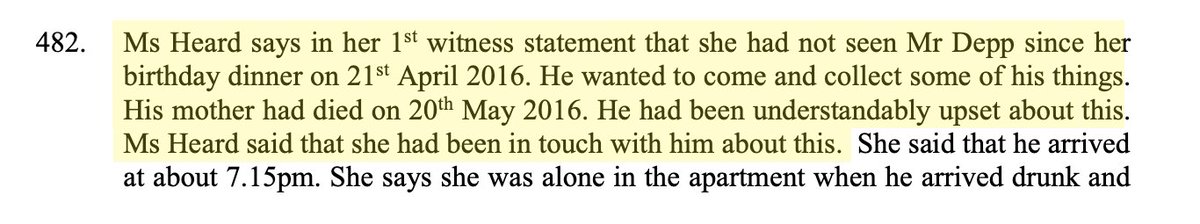 The day after Amber's 30th birthday dinner (22nd April 2016) Hilda Vargas, a cleaner and housekeeper for Depp for many years, arrived to clean PH3. Neither Depp nor Heard were present.