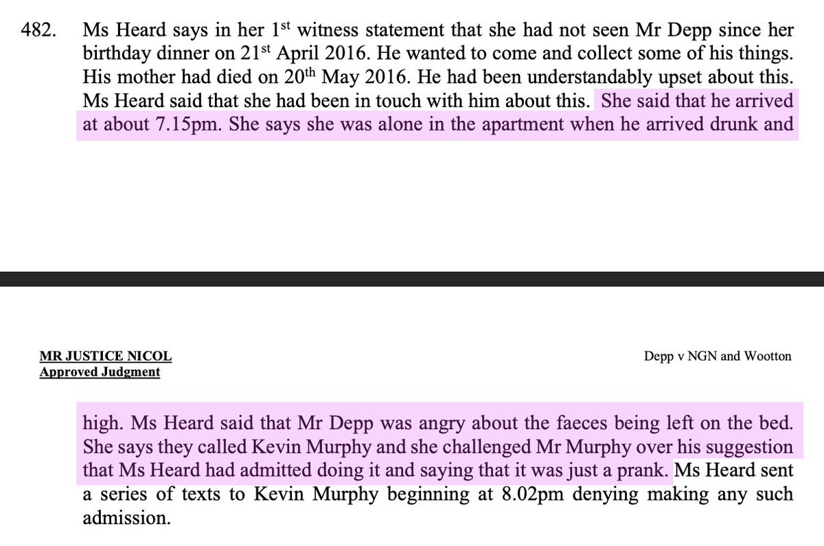 Heard would testify both in the US and in the UK that she did not 💩 the bed. She called it “disgusting” and was “not in the pranking mood” as her husband had attacked her on her 30th birthday.