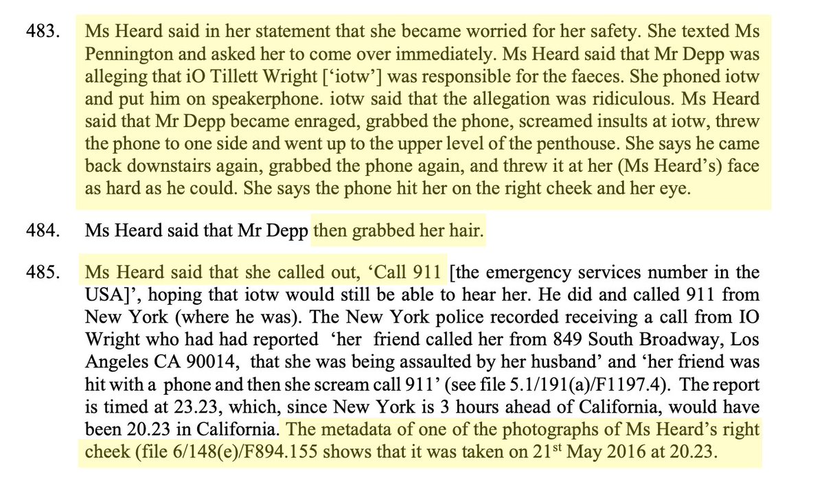 Amber told iO that Johnny had thrown it directly at her face and hit her with it. At that point, iO heard Johnny say. “Oh you think I hit you? What if I pull your hair back?” The phone dropped.