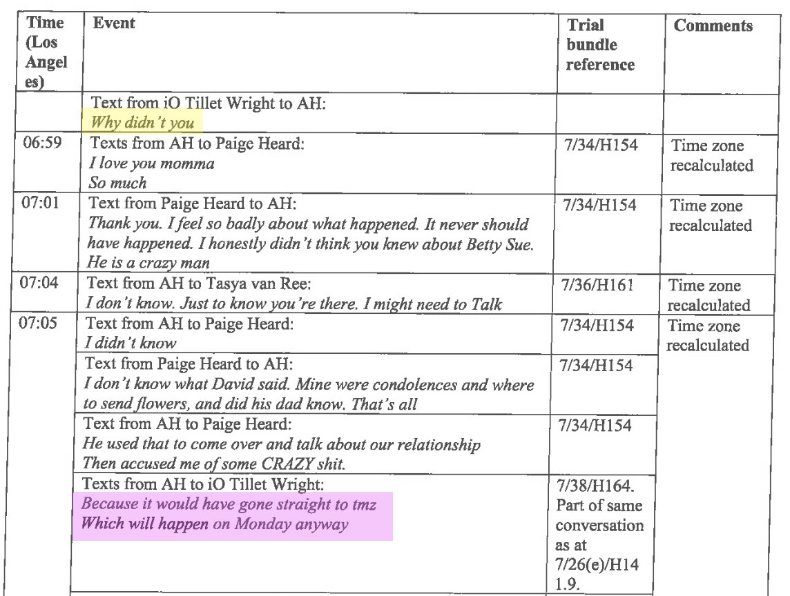 Amber angrily denied this to him over the phone, and in subsequent text messages.