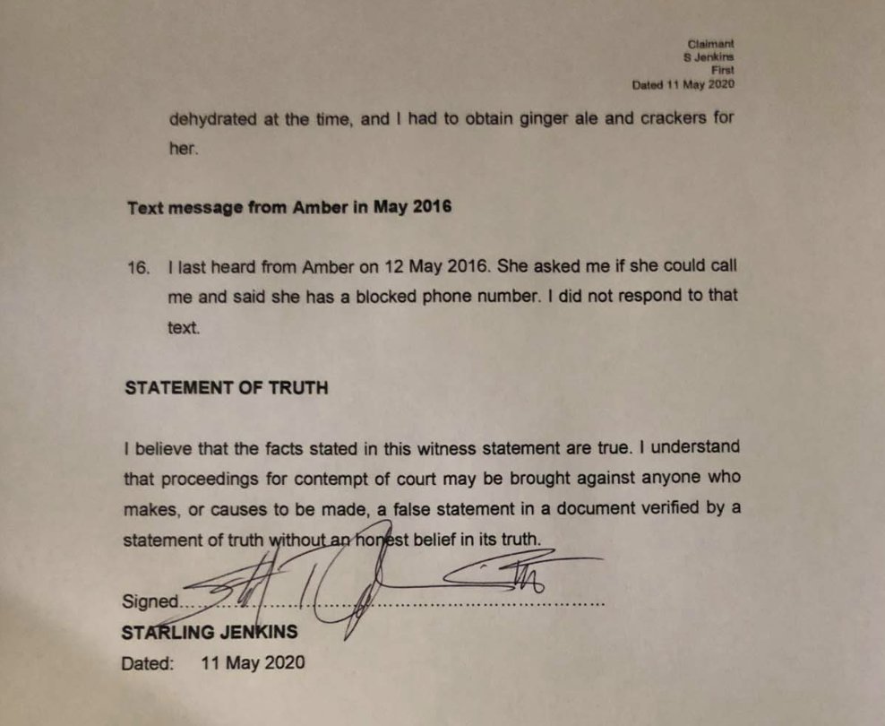 Oddly enough, Starling Jenkins did not think to mention this conversation at all in the UK trial. Below is his entire witness statement.