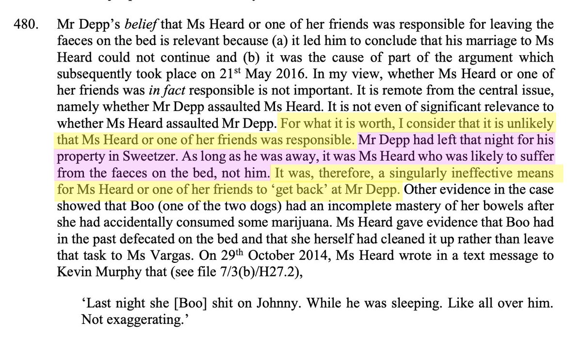 On November 2, 2022: High Court Justice Andrew Nicol decided "it is highly unlikely that Ms Heard or one of her friends was responsible".