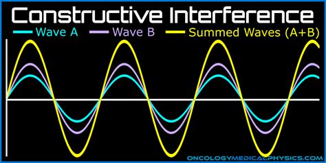 In acoustics, a constructive interference happens when the amplitude of two in-phase waves are summed and the resultant wave is greater than the amplitude of the first two waves.