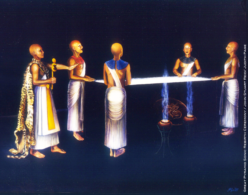 The Egyptians built a highly resonant granite chamber and sarcophagus which produced hallucinatory fumes for enhancing the singing in their mythological rebirth rituals as the central feature of their 480 foot tall Great Pyramid.