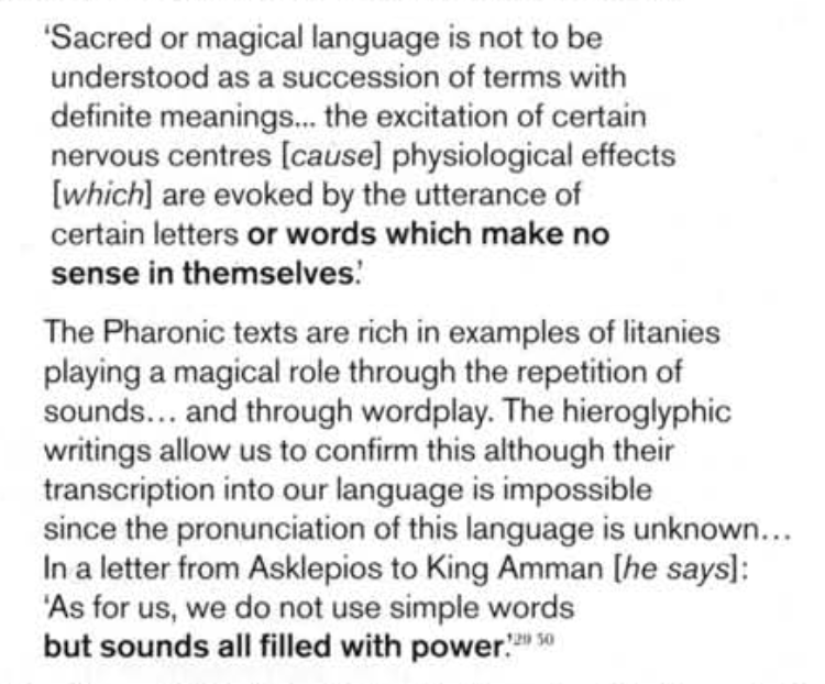 This passage from Corpus Hermeticum explains why the Egyptians would want such an unusually resonant room given their desire for a continuity of repeated sounds: