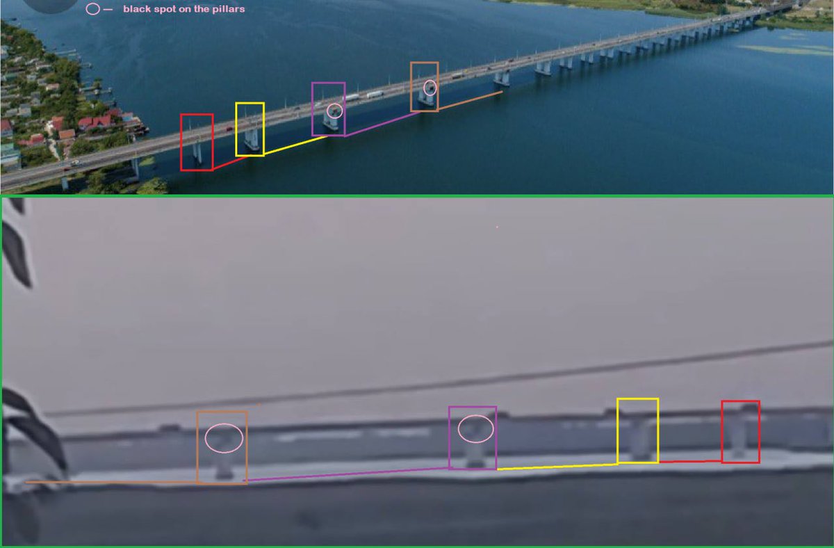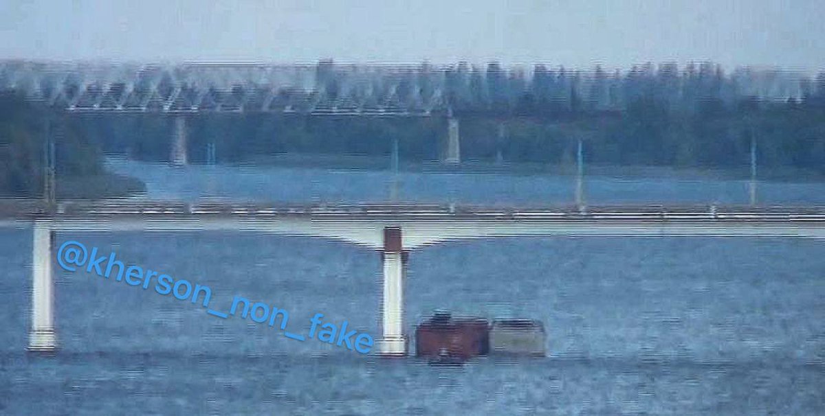 Video showing Ru continuing to build a barge bridge. As well as a video which, unfortunately, shows movement of Ru trucks on bridge today at 6 am. (Already after the morning strikes on the bridge). Video by Kherson journalist - Konstantin Ryzhenko.