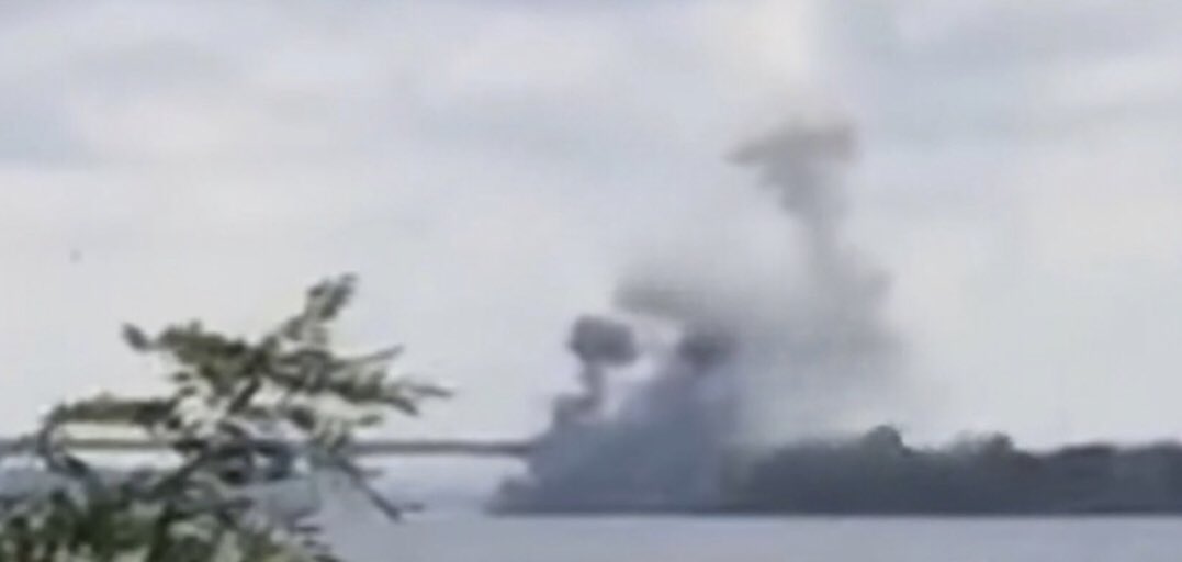 A video of presumably some of the recent strikes on barges near the Antonovsky bridge has been published