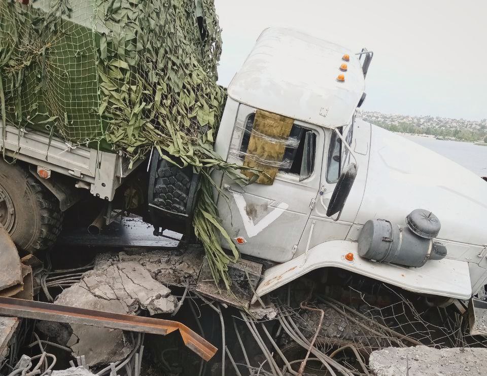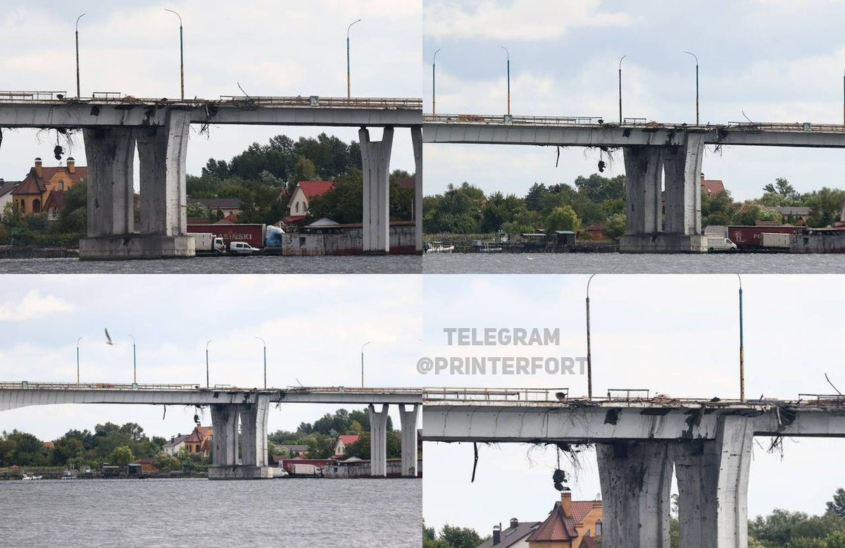 According to local residents, for the first time since 30/08, vehicles were able to drive over the bridge. Two very slow and careful Russian military trucks.