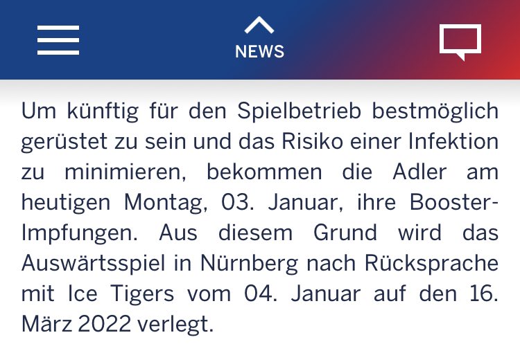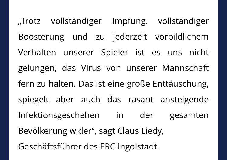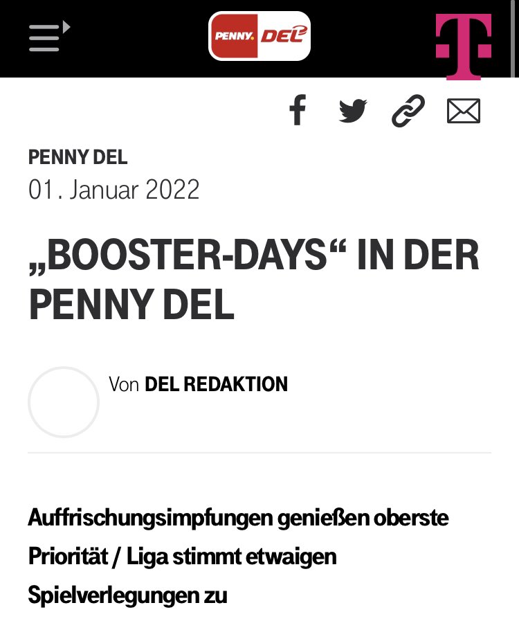 … in der Dt. Eishockey-Liga DEL die sog. „Booster-Days“. Die Liga hatte die zügigen Booster-Impfungen der Teams als so wichtig erachtet, dass dafür sogar Spiele verschoben wurden.