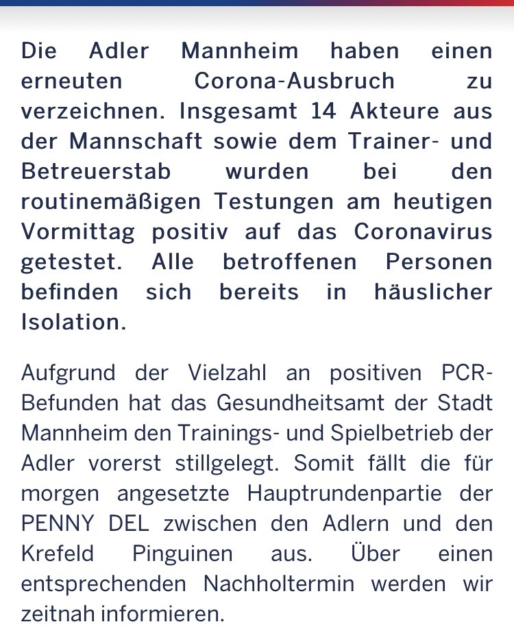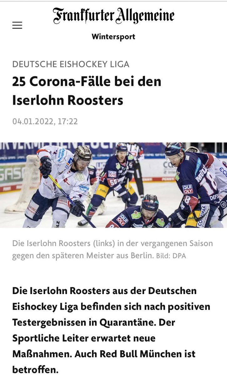 Im Zusammenhang mit den Fällen beim ERC hatte eine Tageszeitung davon gesprochen, dass auch vier weitere Teams Mitte Januar aufgrund von Corona und Quarantäne nicht spielfähig waren: