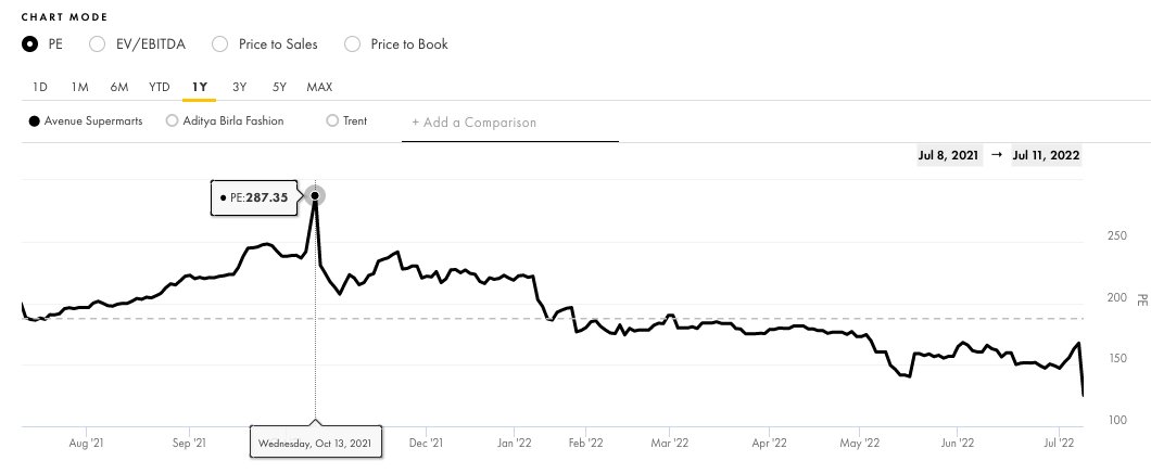 Price to Earnings has fallen from 287x to 125x post the results.