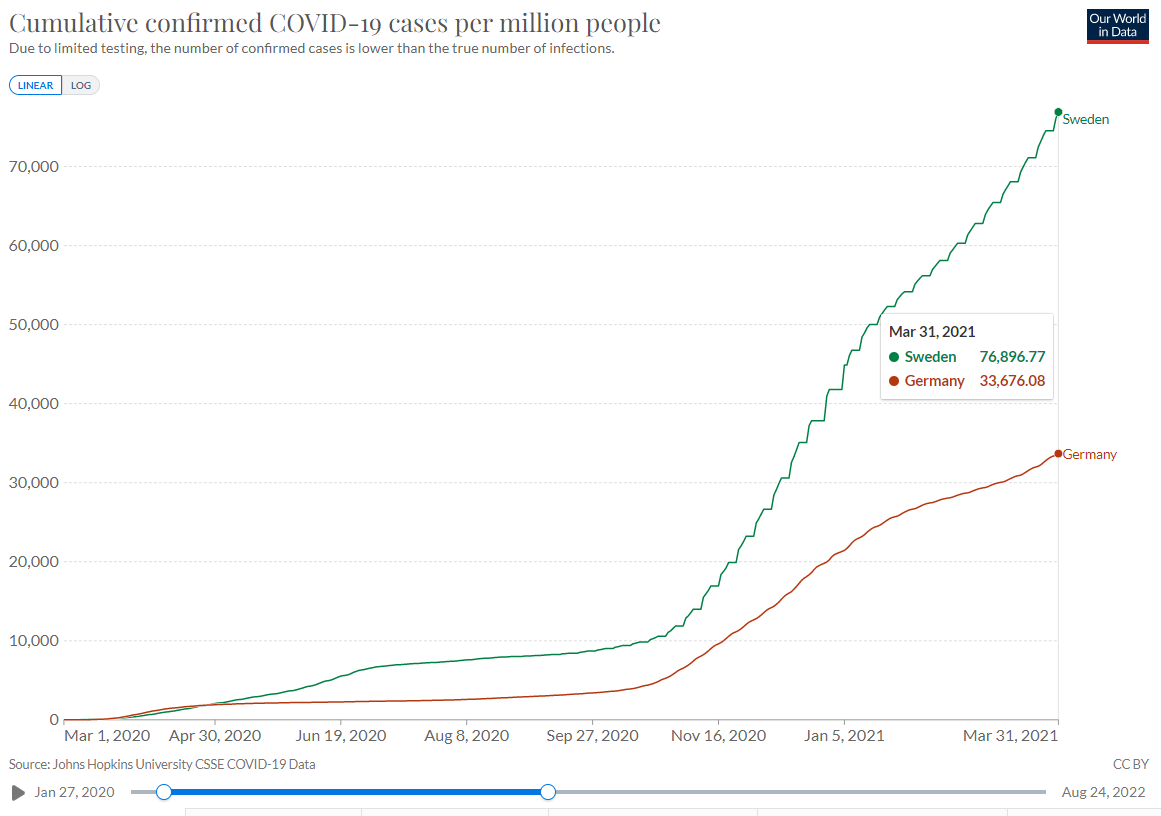 After 21 month of pandemic, the German RKI registrated 7.1 M positive pcr-tests (max 8 per cent of the population).