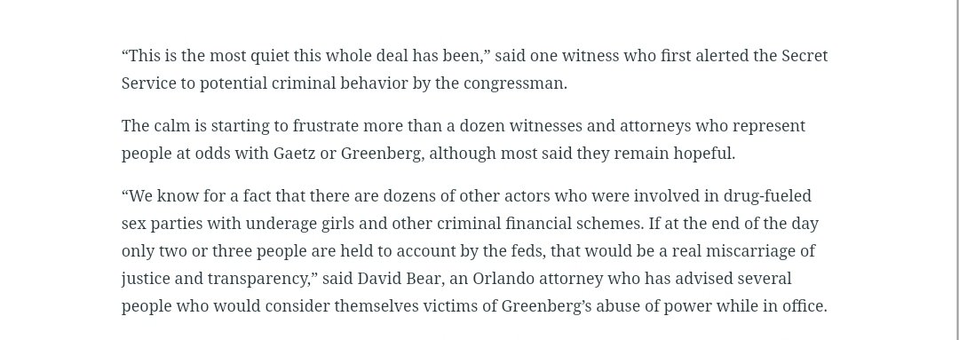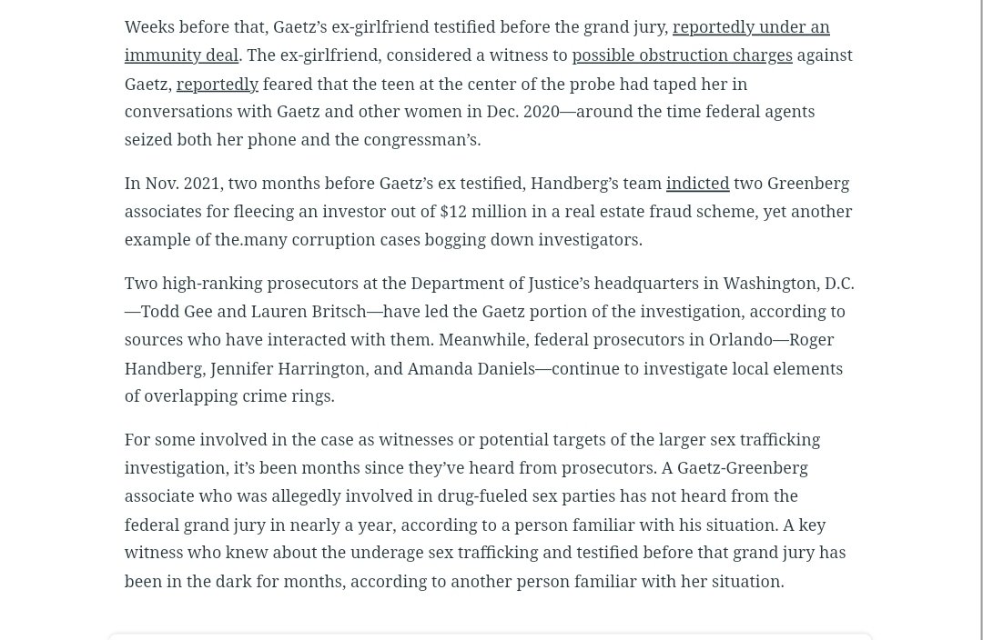 In Nov. 2021, 2mos before Gaetz’s ex-girlfiend testified, Handberg’s team indicted 2 Greenberg associates for fleecing an investor out of $12mil in a real estate fraud scheme, yet another example of the many corruption cases bogging down investigators