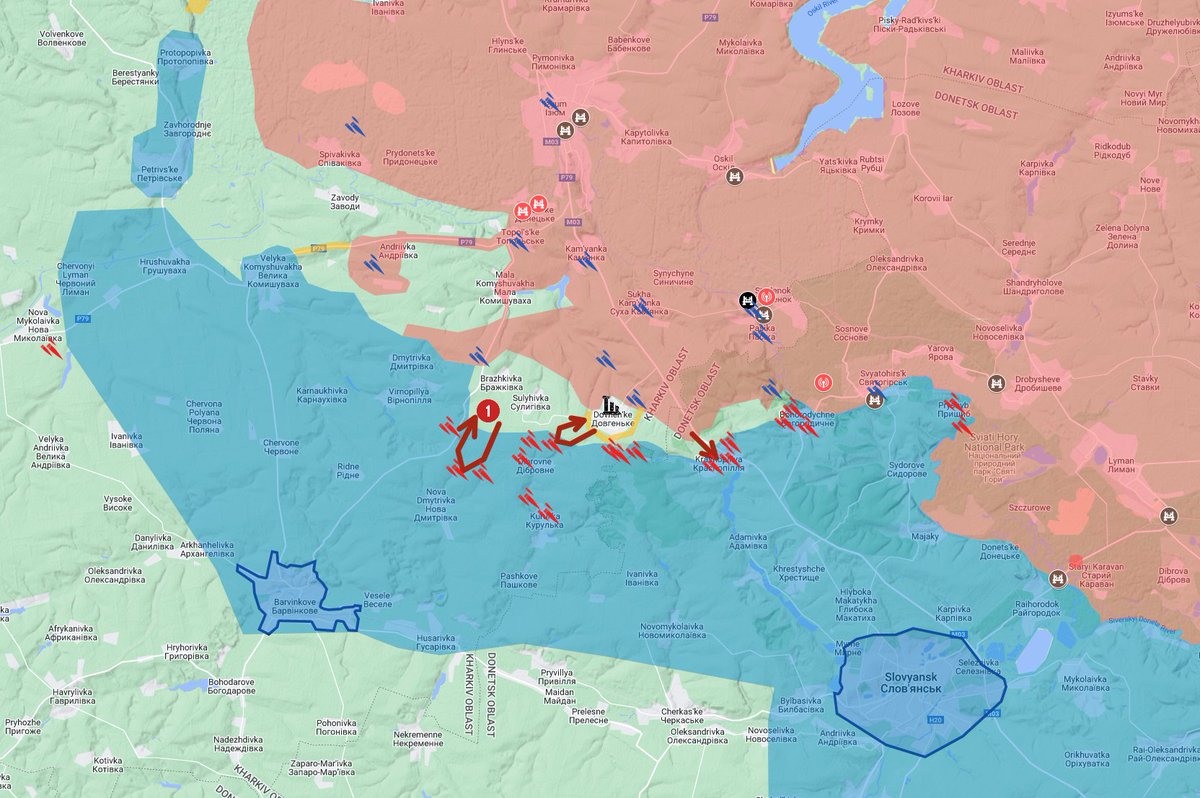 Even though Russia withdrew most of its forces in the Izyum area, they are still strong enough to perform minor offensive operations. Today they attacked Dmytrivka (2) and Dolyna (3).