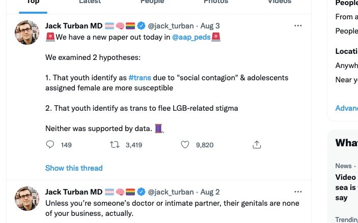 1./ Would you like to read a brilliant takedown of second rate science? I love when a researcher digs deep into someone else's work and finds glaring flaws. That's what Michael Biggs has just done with the most recent work by the awful Jack Turban. So what's the truth?