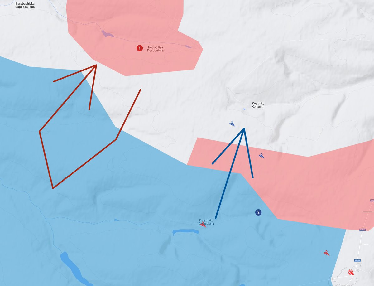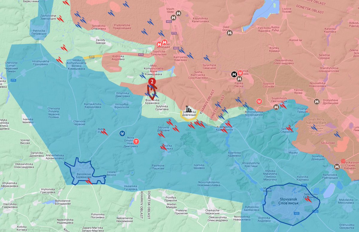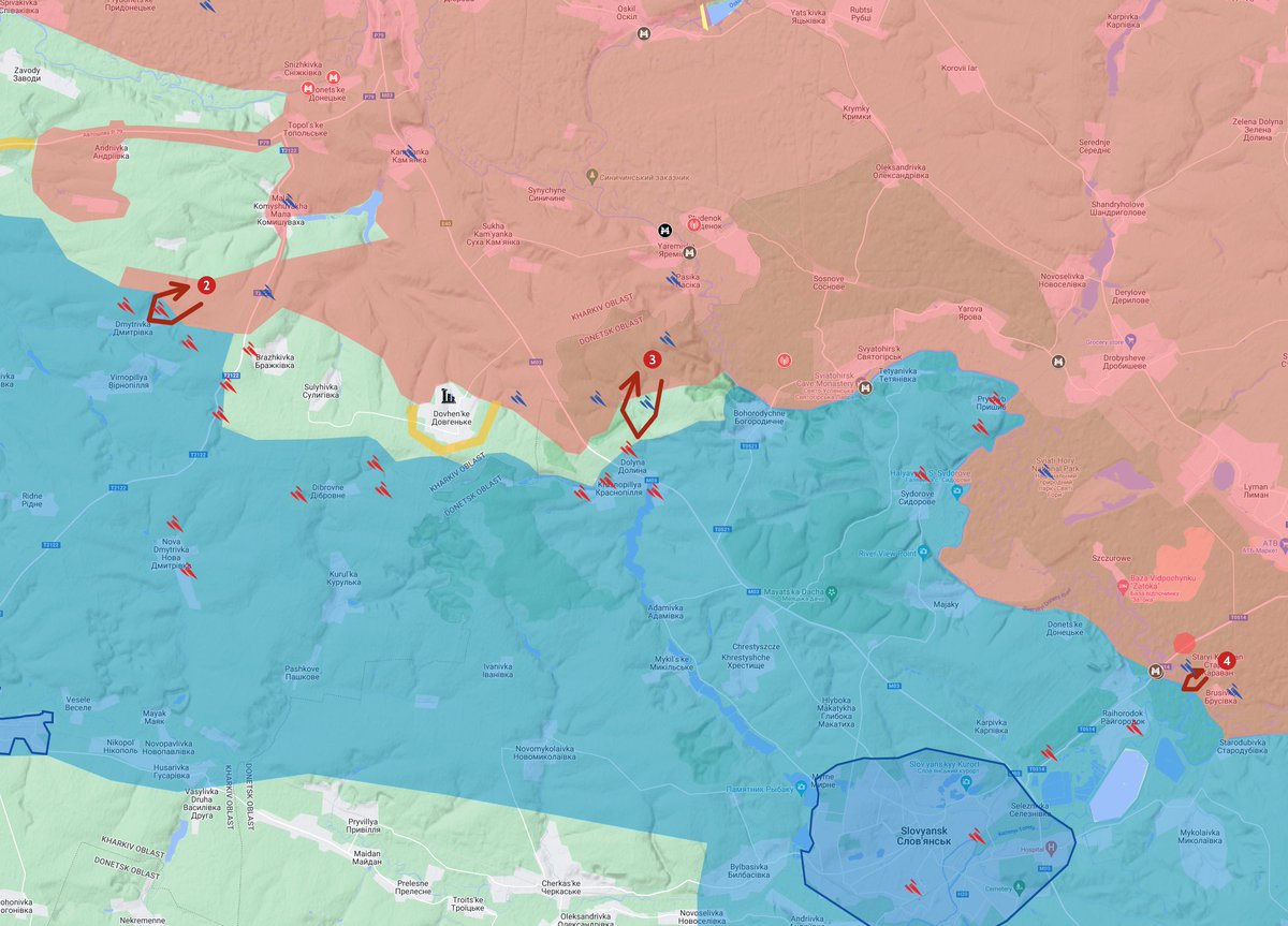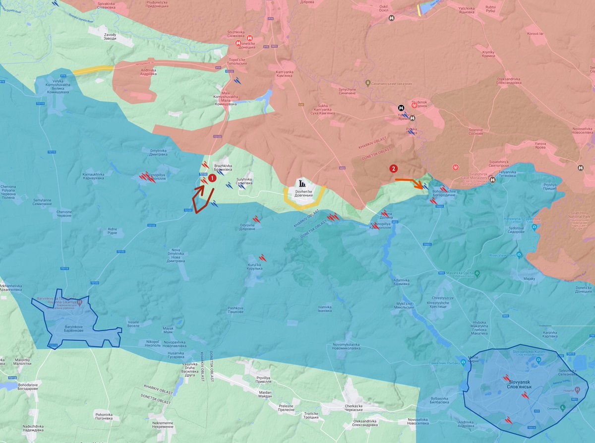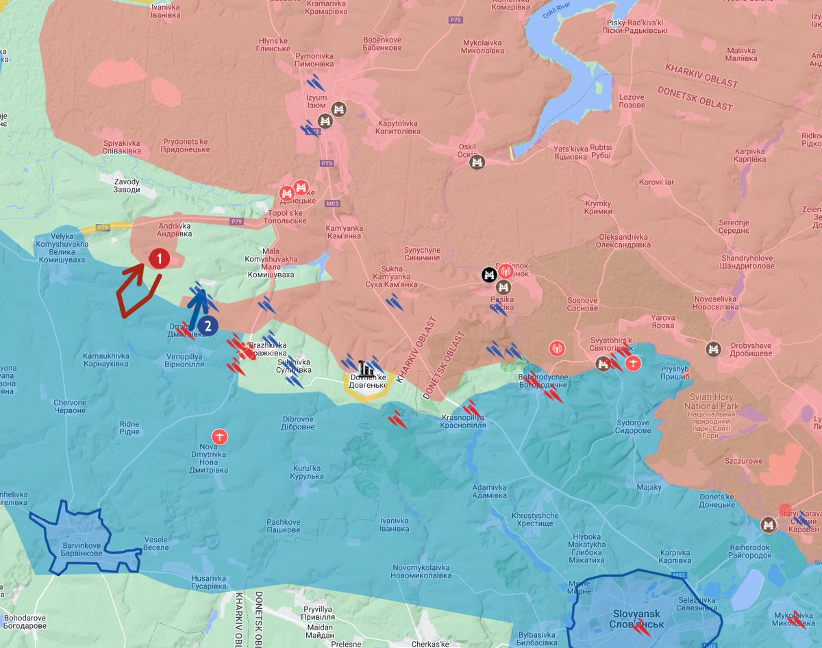 Even though Russia withdrew most of its forces in the Izyum area, they are still strong enough to perform minor offensive operations. Today they attacked Dmytrivka (2) and Dolyna (3).