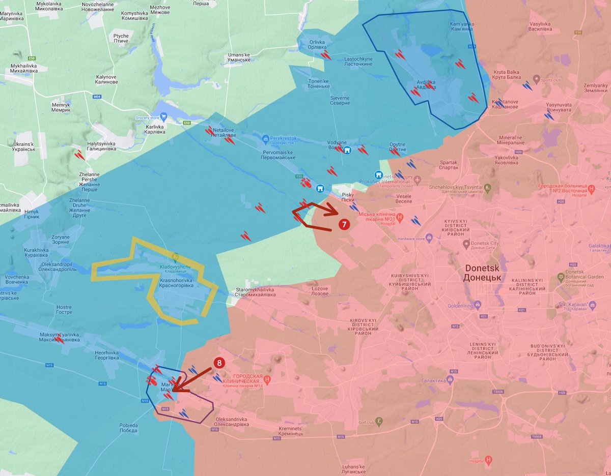 Ukraine repelled a Russian attack in the direction of Nevelske (7). There is ongoing fighting in Marinka (8).