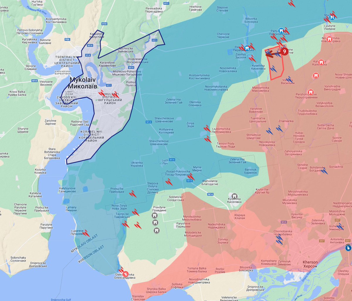In the Kherson/Mykolaiv area, Russian forces have moved a few kilometers toward Pervomaiske from Blahodatne (9). I do not think Russia has a realistic chance of capturing Pervomaiske, but apparently, they might be interested in trying.
