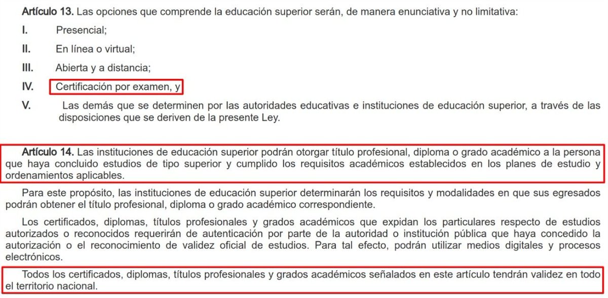 En adición, en el DOF:20/04/2021 en el Art. 11 dice "A la conclusión de este nivel educativo, se otorga el grado correspondiente" y en el Art. 13 que son las Instituciones de Educación Superior (IES) quienes otorgan el grado, con validez en todo el territorio nacional.