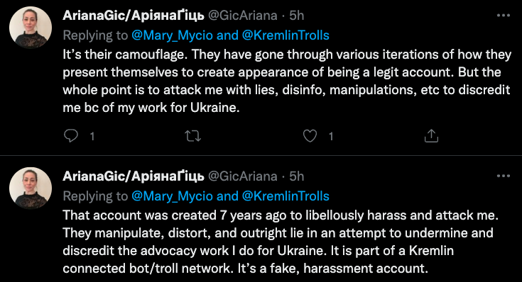 . @gicariana making spurious allegations again, without evidence. The typical gaslighting strategy she's used for years to attack experts, journalists to avoid answering any questions about her so-called 'advocacy' for Ukraine.