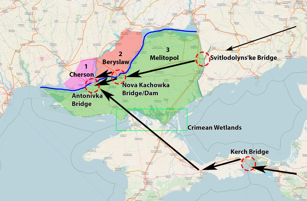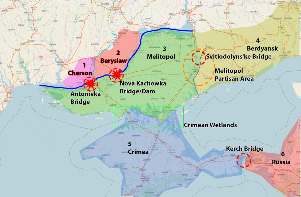 If the russian army in Sector 1-3 collapse, all that would stop #ukraine from recapturing Crimea would be the two chokepoints at the Crimean Wetlands
