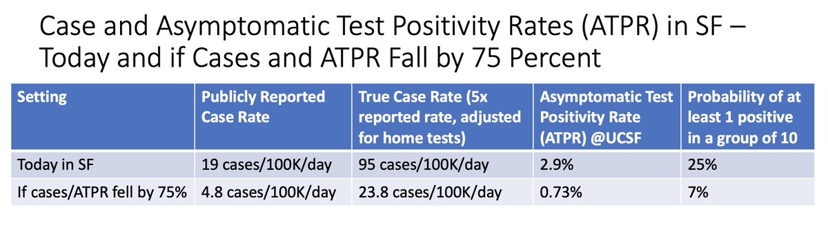 Today’s ATPR @UCSF is 2.9%, meaning that 1 in 35 people who feel fine would test + for Covid. On its face, 1-in-35 doesn’t sound like super-scary odds.