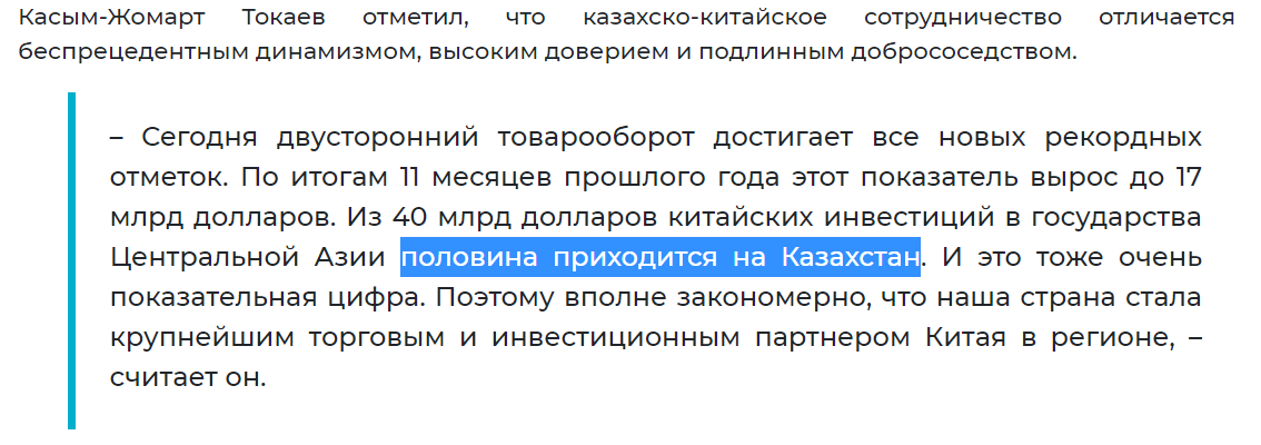 Regional cooperation is complicated also by the competition between CA states over Beijing's attention. During the summit, president Toqaev mentioned that half of the investment from China to the region goes to KZ.