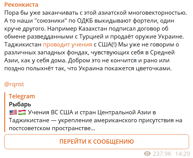 This (together w/ some other news about e.g. Tajikistan's drills w/ the US) sparked another wave of anger among Russian hawks.