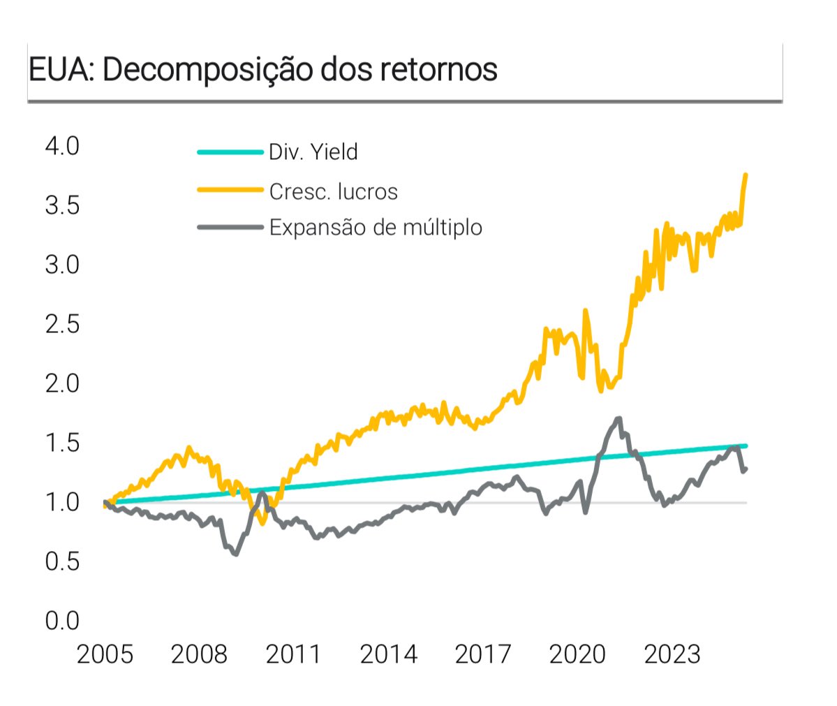 Tanto em 2025 quanto na ultima década, o CRESCIMENTO de lucros vem sendo o principal motor da Bolsa americana.