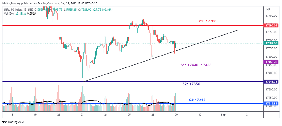• Post a bullish marubozu candle, we are witnessing a follow-up trend on the upside.