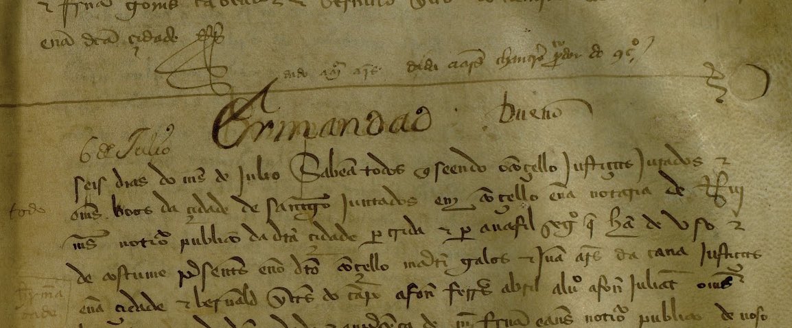 Séculos despois, un escribán, xa en castelán, escribiu “Ermandad”. Irmandade. Destacou o escrito para que fora doado de localizar.