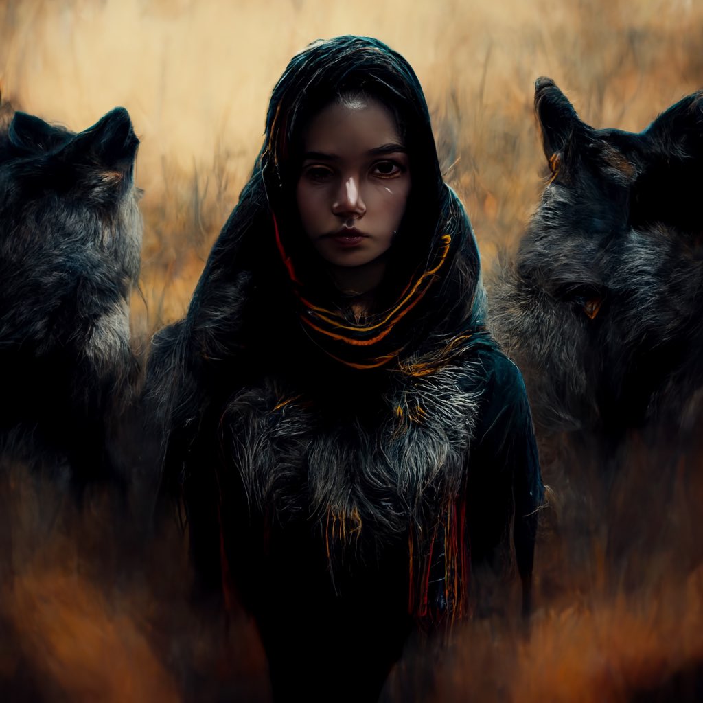 A Loba Branca, muller e loba ao tempo, que coidaba das mandas de lobos do Barbanza por riba de Mosquete e As Escobias.