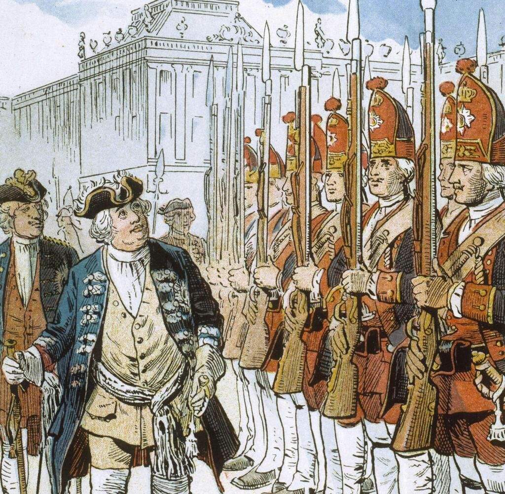 El artífice de esta unidad fue el rey Federico Guillermo I, padre de Federico el Grande. Guillermo era un entusiasta de lo militar, hasta el punto que solía vestir con uniforme todos los días. Con él, el ejercito prusiano obtuvo las bases que le harían triunfar en el s.XVIII